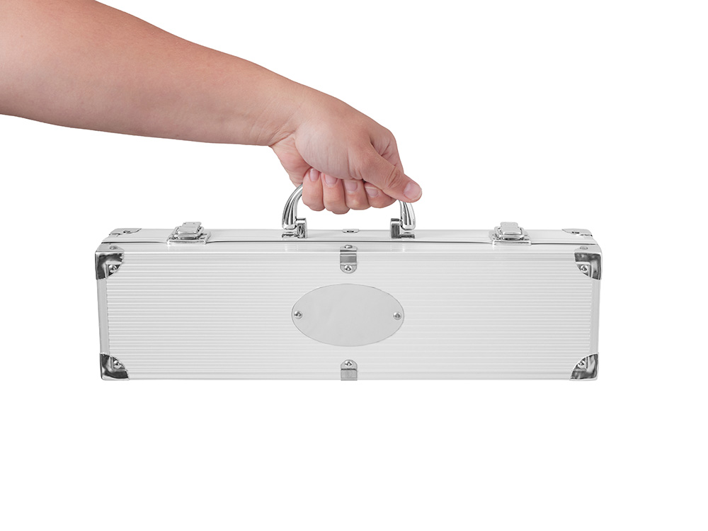 Набор для барбекю 3 предмета. Лопатка, щипцы и вилка в кейсе. На алюминиевом кейсе имеется шильд для персонализации.