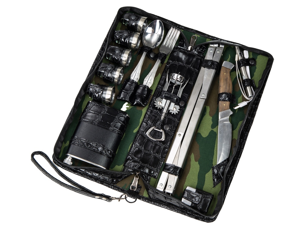 Оригинальный дорожный набор на 5 персон в барсетке с удобным ремешком для переноски.