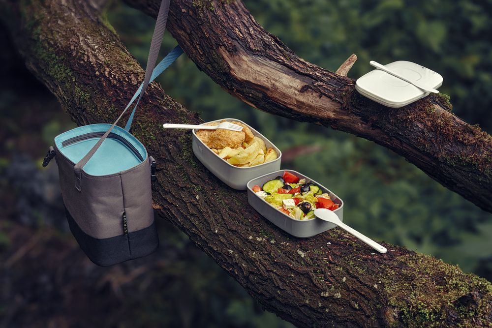 ланчбоксы, приборы - пластик, пластик, полиэстер, сумка - полиэстер, термоизоляция