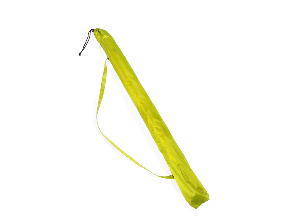 Пляжный зонт с 8 панелями из прочного нейлона с защитой от ультрафиолета. Доступен в широком ассортименте цветов. Стержень с регулируемой высотой и белыми спицами. Купол окантован двойной строчкой. В комплекте чехол для переноски с плечевым ремнем.