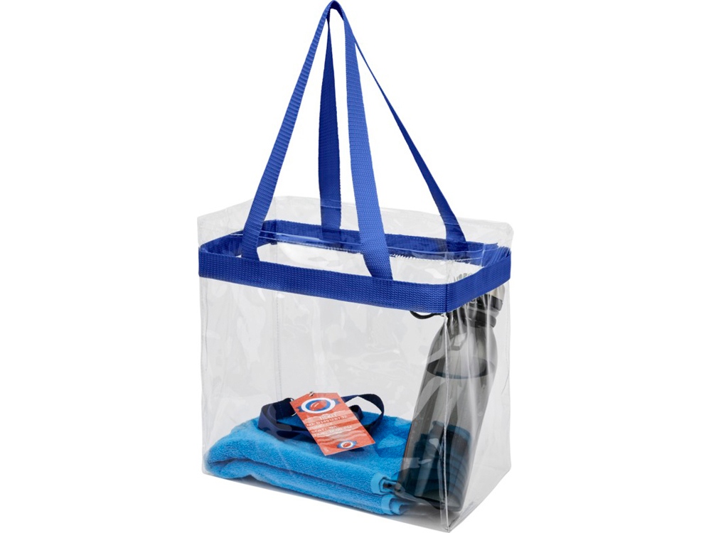 Эта прозрачная сумка отлично подходит для фанатов, которые предпочитают безопасно паковать свои принадлежности для стадиона и мероприятий. Она также подходит для работы и школы. Открытое основное отделение со спортивной сетчатой отделкой и двумя ручками. Высота ручек 27 см. Принадлежности не включены. ПВХ.