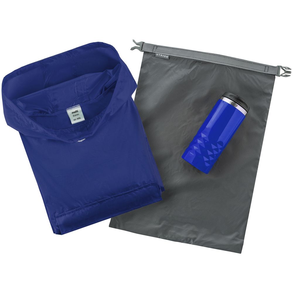 дождевик - полиэстер, мешок - нейлон, рипстоп, нейлон, пластик, полиэстер, термостакан - пластик, нержавеющая сталь