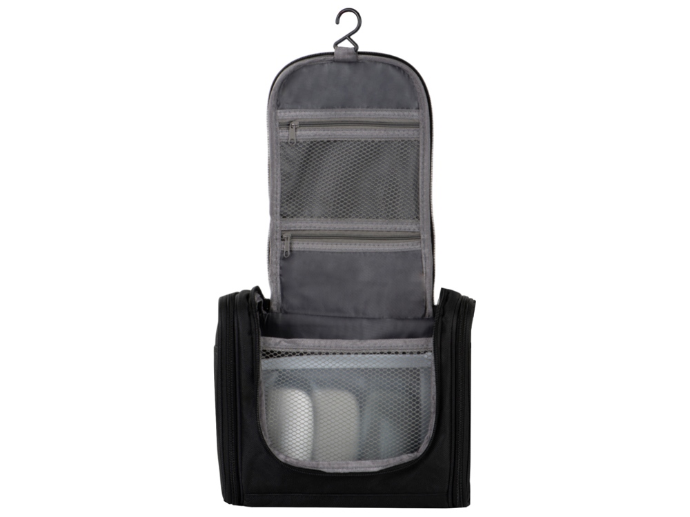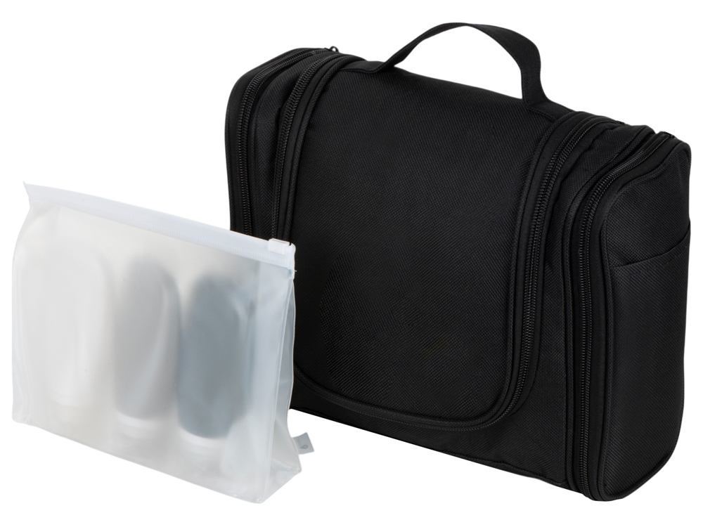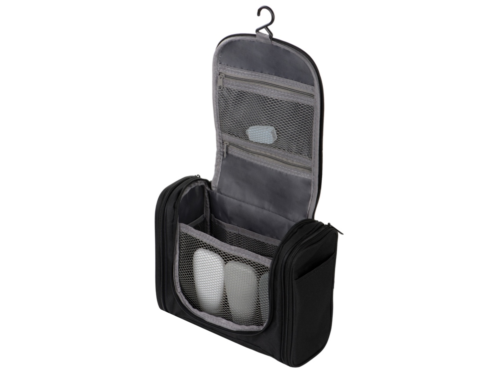 Несессер для путешествий. Эргономичный и вместительный, имеет внутренние и внешние карманы и большое отделение внутри. Оснащён ручкой для переноски и крючком для подвешивания. Нейтральный лаконичный дизайн позволяет преподнести несессер как мужчине, так и женщине;