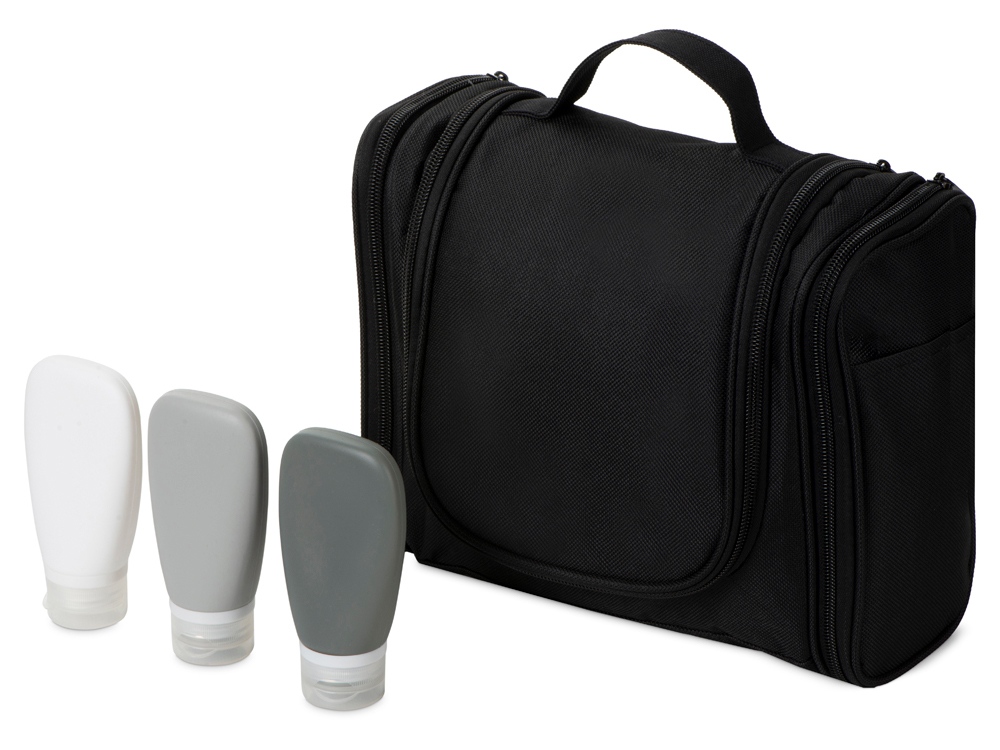- силиконовые флакончики упакованы в полупрозрачную косметичку из EVA;