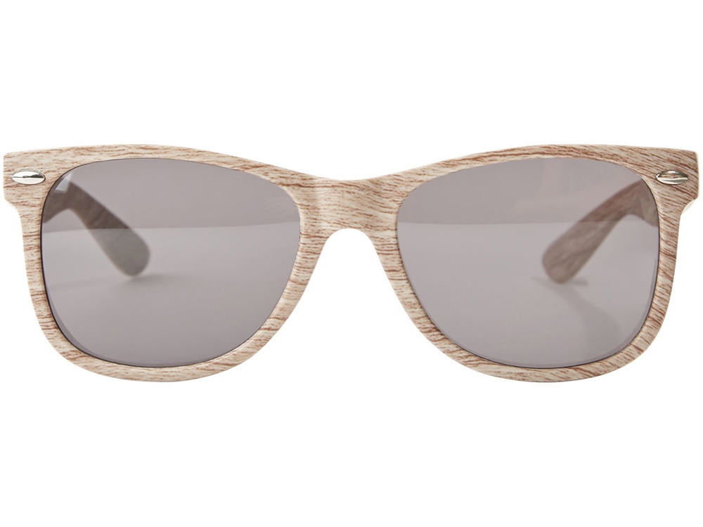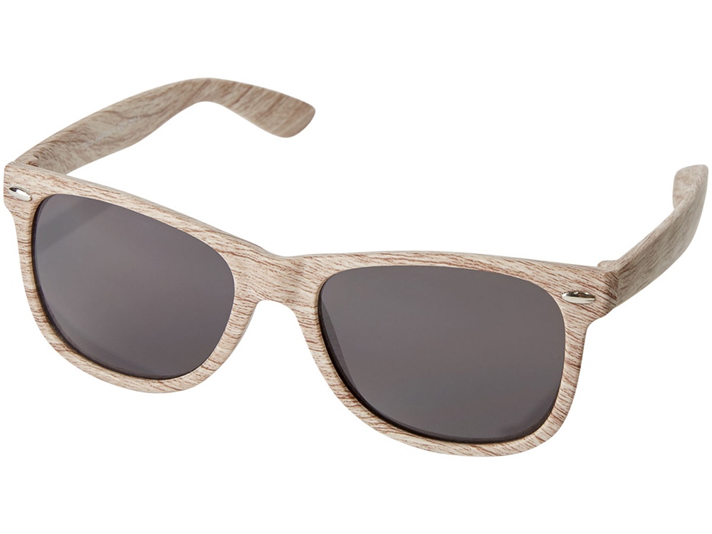 Солнцезащитные очки Allen. Солнцезащитные очки в стиле ретро со стильной оправой под дерево и линзами 3 категории. Соответствуют стандартам EN ISO 12312-1 и UV 400. ПК-пластик. Тампопечать (1 цвет (цветные изделия)) на данный товар осуществляется бесплатно. Оплачивается только настройка оборудования в размере 3600 рублей на весь тираж.