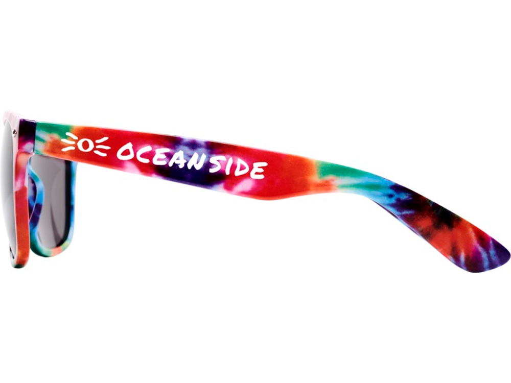 Солнцезащитные очки ретро-дизайна Sun Ray с модной пестрой оправой. В соответствии со стандартами EN ISO 12312-1 и UV 400 линзы относятся к категории 3. Поликарбонат. Тампопечать (1 цвет (цветные изделия)) на данный товар осуществляется бесплатно. Оплачивается только настройка оборудования в размере 3600 рублей на весь тираж.