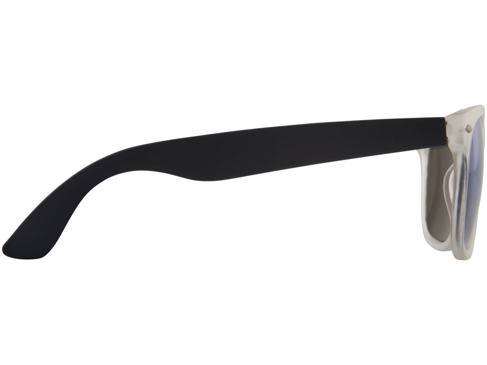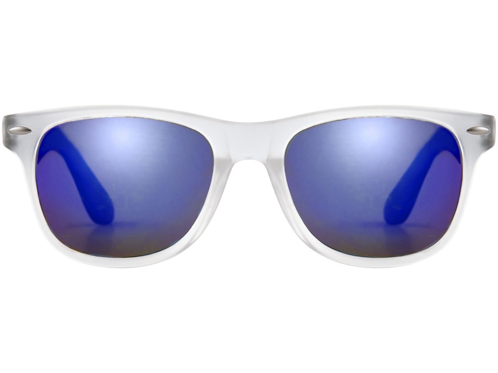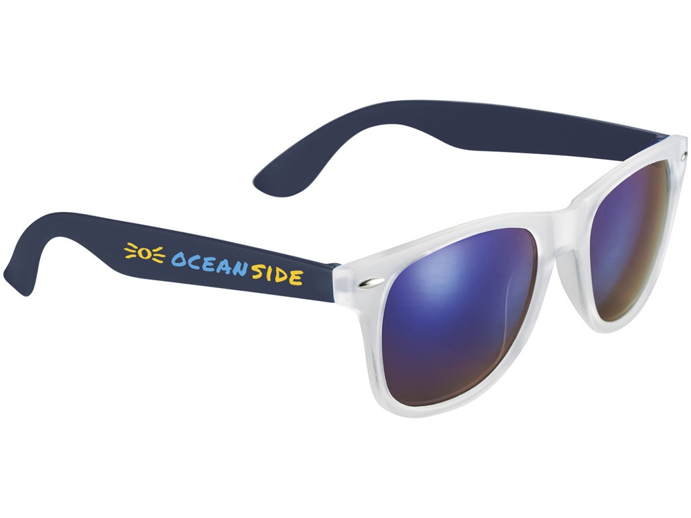 Солнцезащитные очки Sun Ray - зеркальные. Солнцезащитные очки в стиле ретро с матовым белым ободком, зеркальными линзами 3 категории в трех разных тонах и дужками в цвет. Соответствуют стандартам EN ISO 12312-1 и UV400. ПК-пластик. Тампопечать (1 цвет (цветные изделия)) на данный товар осуществляется бесплатно. Оплачивается только настройка оборудования в размере 3600 рублей на весь тираж.
