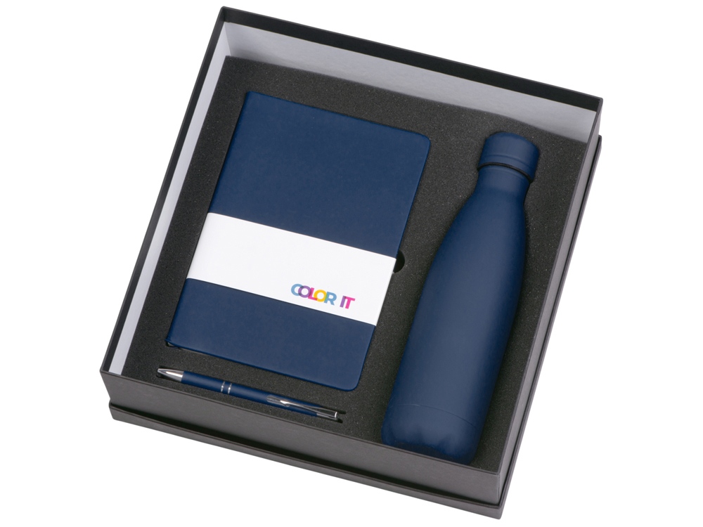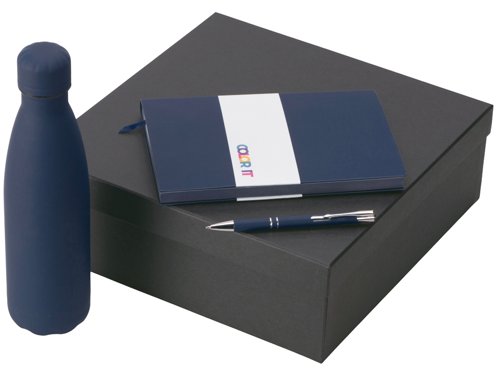 Подарочный набор с блокнотом С1, металлической ручкой и термобутылкой, темно-синий