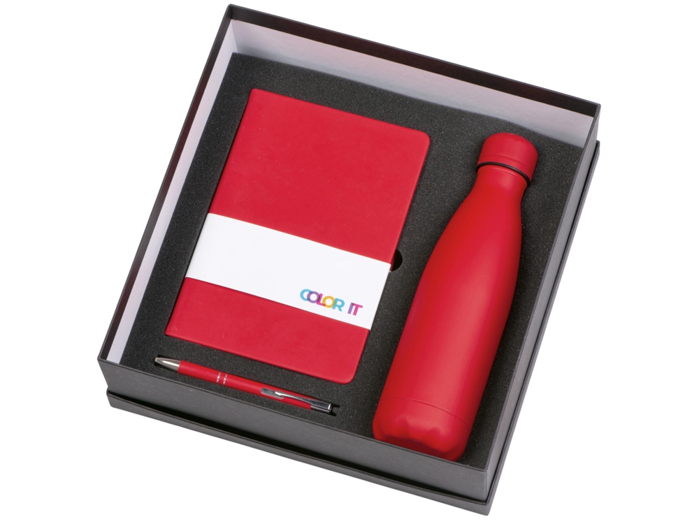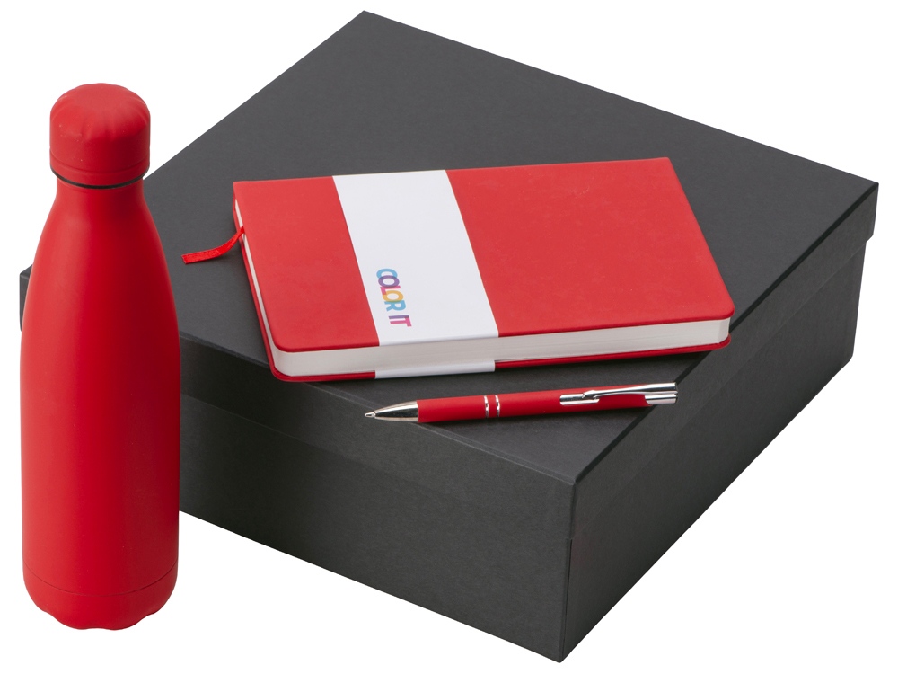 Подарочный набор с блокнотом С2, металлической ручкой и термобутылкой, красный