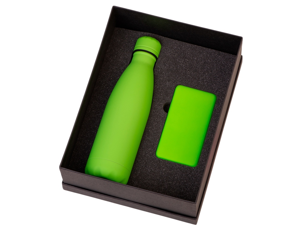 Подарочный набор с термобутылкой и повербанком С1, 5000 mAh, зеленое яблоко