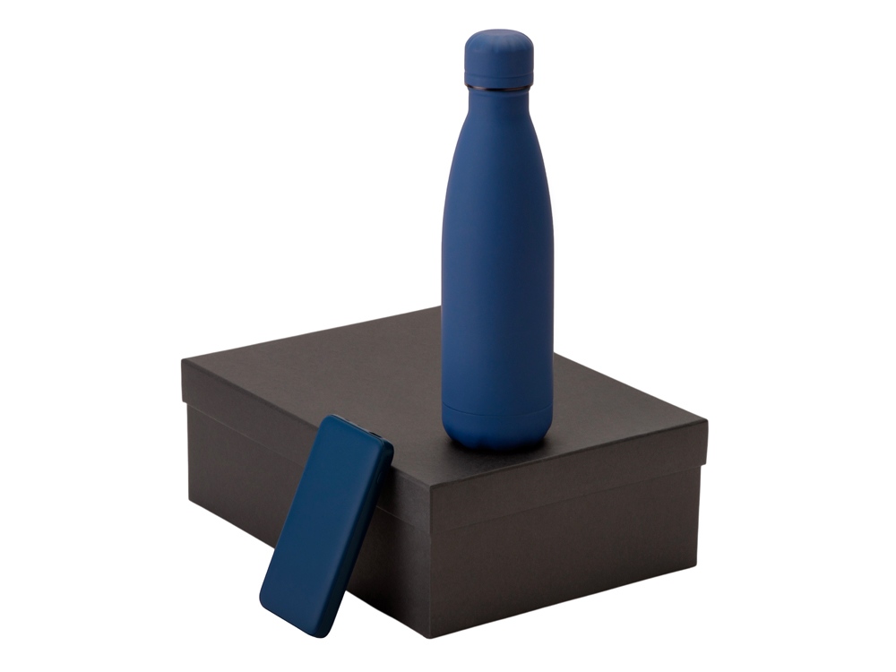 Подарочный набор с термобутылкой и повербанком С2, темно-синий