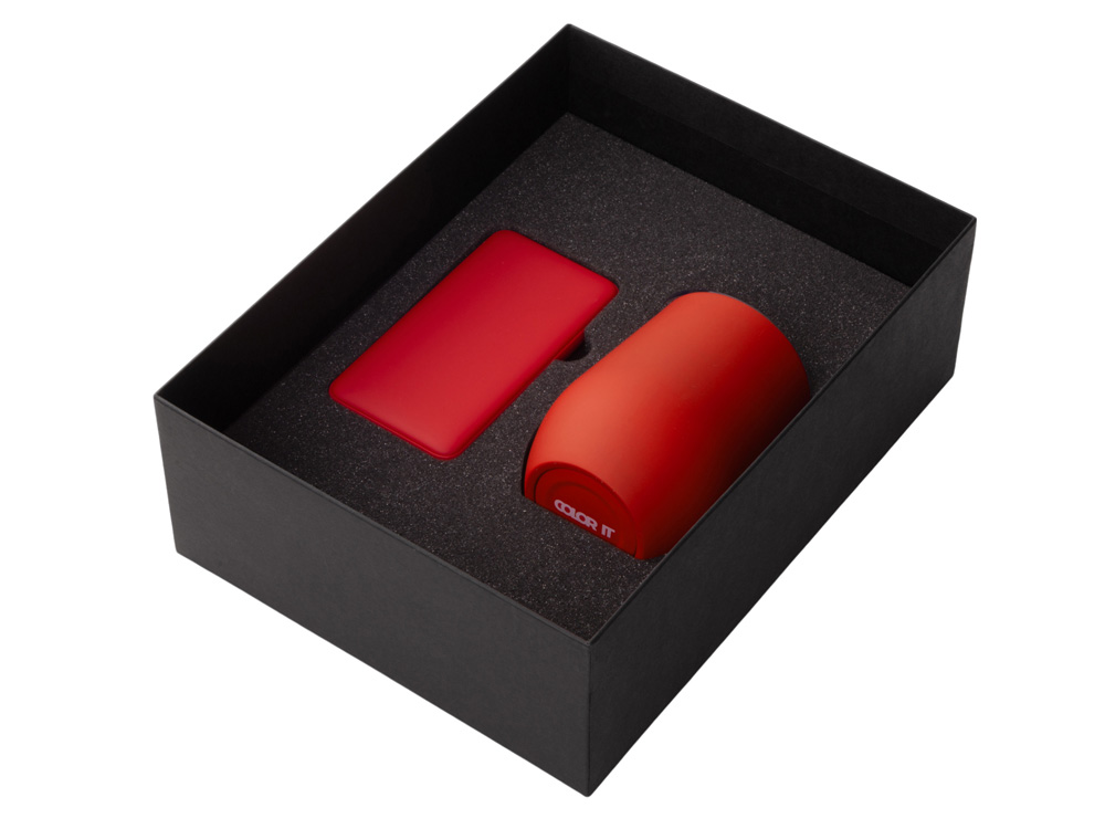 Подарочный набор с термокружкой и повербанком С2, 10000 mAh, красный