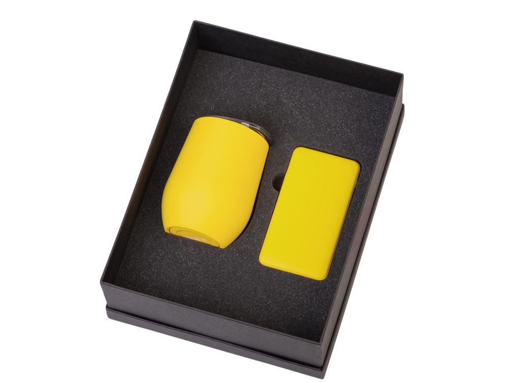Подарочный набор с термокружкой и повербанком С2, 10000 mAh, желтый