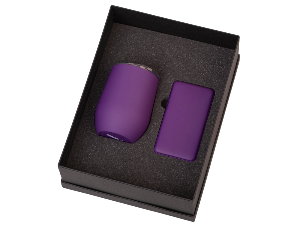 Подарочный набор с термокружкой и повербанком С2, 10000 mAh, фиолетовый