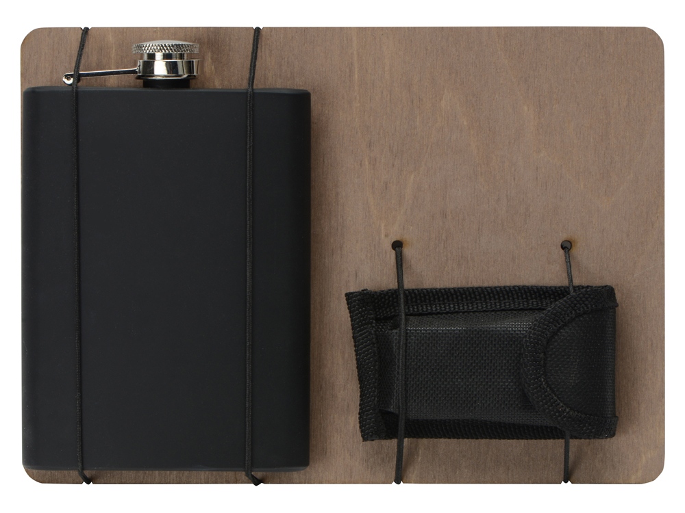 фляжка 240 мл 9,2 х 2,1 х 13,8 см, мультиинструмент 7 х 3,2 х 1,8 см, ложемент из фанеры 20,8 х 15 х 0,6 см