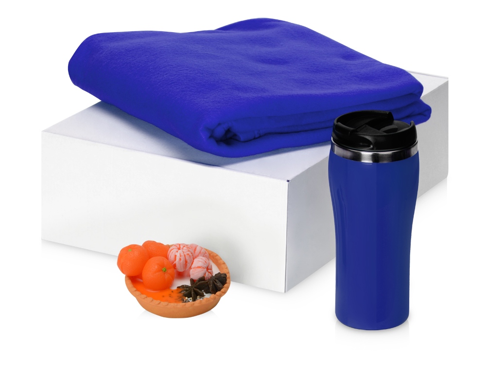 Подарочный набор с пледом, мылом и термокружкой, синий