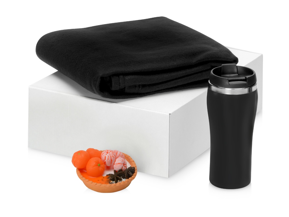 Подарочный набор с пледом, мылом и термокружкой, черный