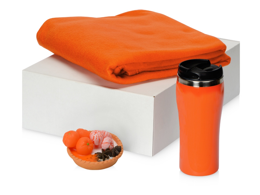 Подарочный набор с пледом, мылом и термокружкой, оранжевый