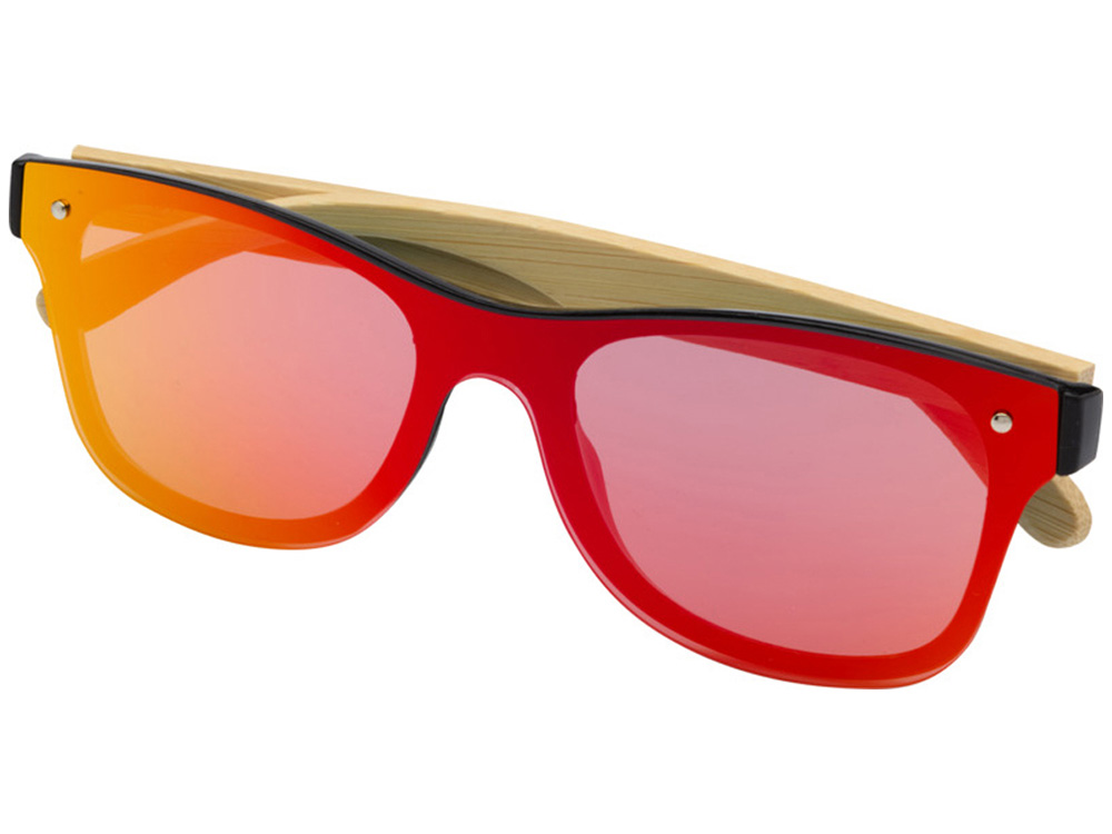 Стильные солнцезащитные очки с цветными линзами и бамбуковыми дужками. Линзы УФ 400 обеспечивают защиту от вредного ультрафиолетового излучения. Соответствует стандарту безопасности ЕС EN12312-1. Бамбук, пластик PC.