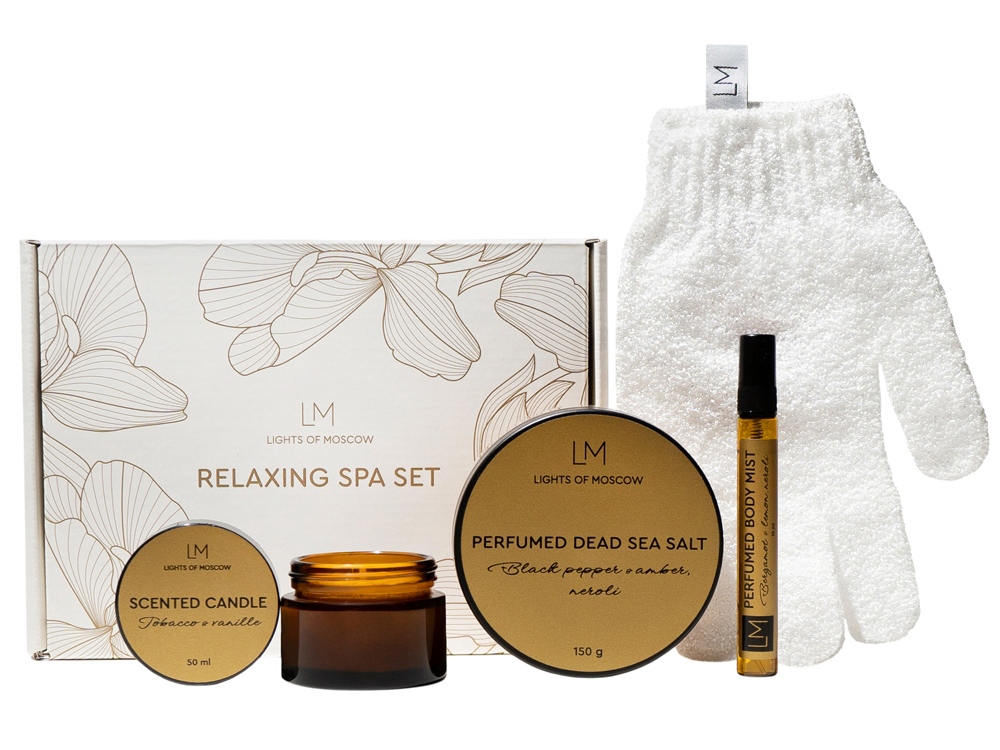 Relaxing Spa Set от Lights of Moscow подарит хорошее настроение и заряд бодрости, а также послужит полезным подарком для ваших родных, близких, друзей и коллег. SPA -набор снимет стресс, поможет восстановить внутреннюю гармонию и позволит окунуться в мир ароматов селективной парфюмерии. Каждый продукт в наборе создан по мотивам современных веяний в перфорированном искусстве. Подборка из трех топовых ароматических композиций даст возможность примерить каждый парфюм на себе, почувствовать звучание и проникнуться его настроением.