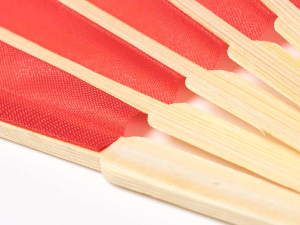 Веер с пластинами из бамбука и полотном из полиэстера.
