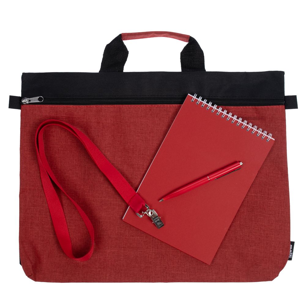 блокнот - картон, бумага, картон, лента для бейджа - нейлон, нейлон, пластик, полиэстер, ручка - пластик, металл, сумка - полиэстер