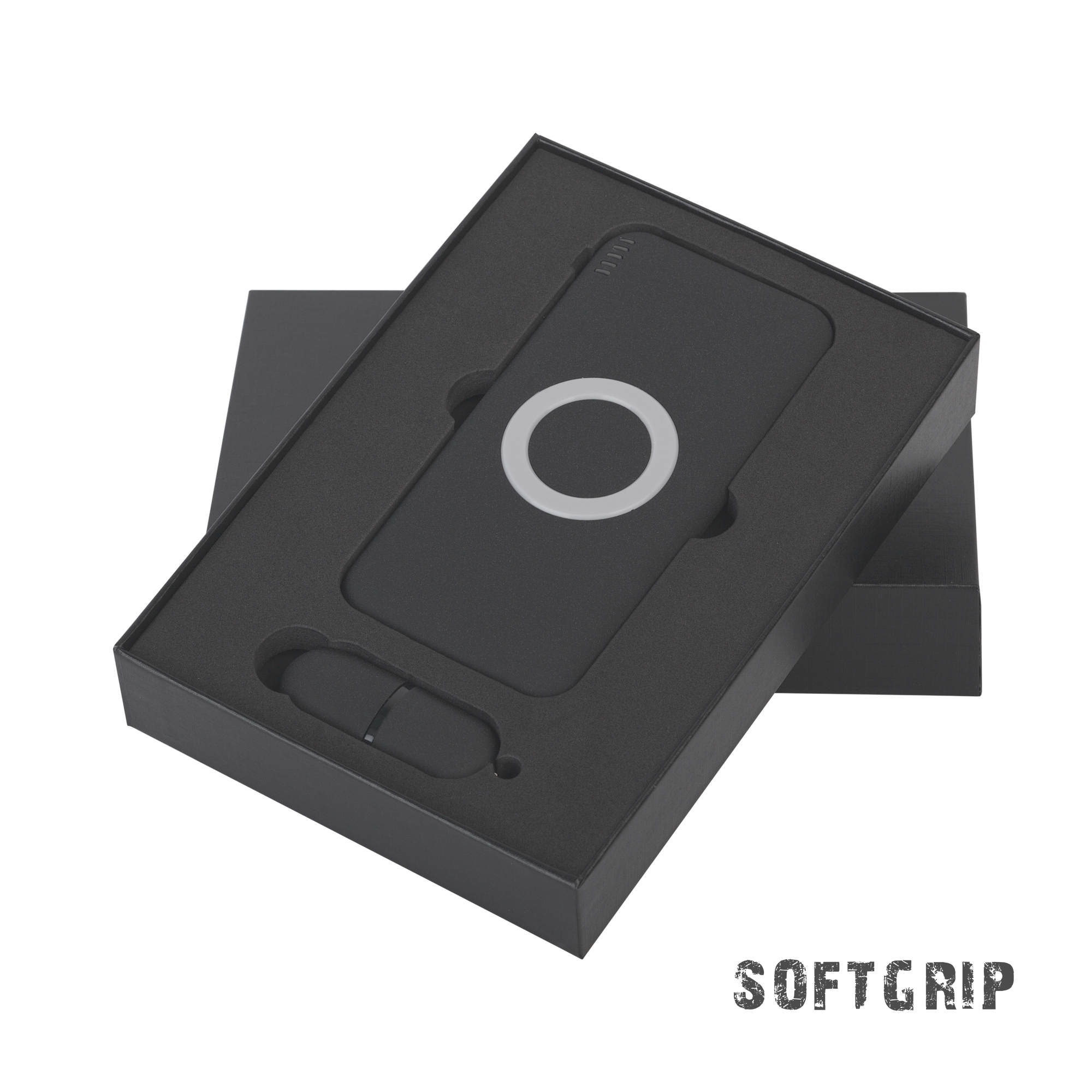 Набор "Камень" на 2 предмета, 8000 mAh /16Gb, с покрытием soft grip, черный