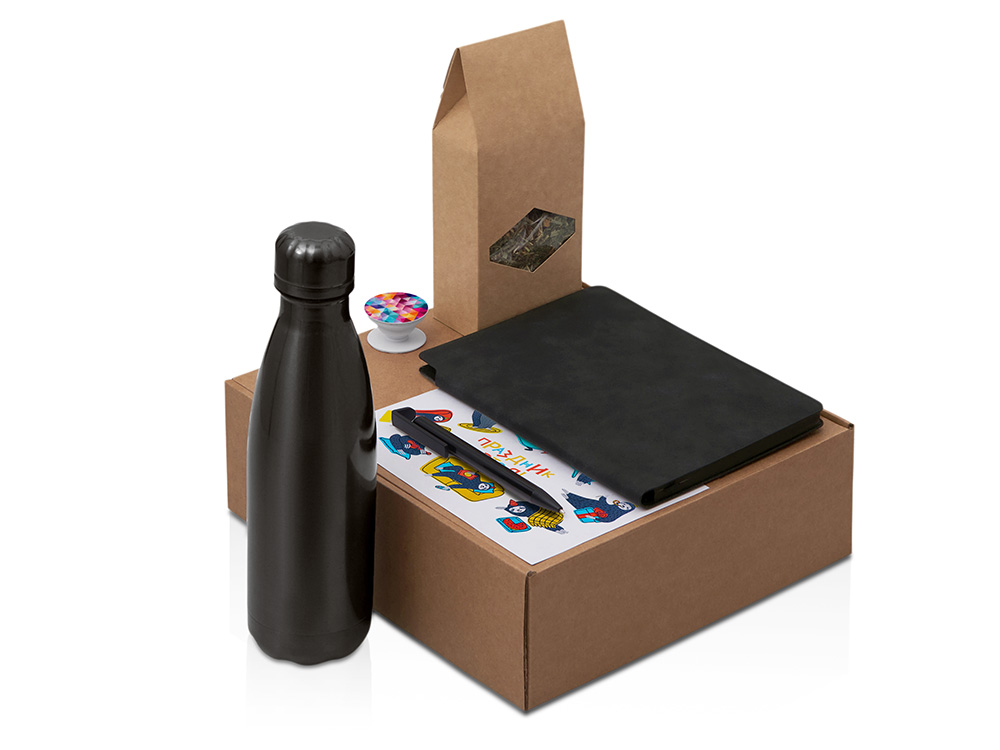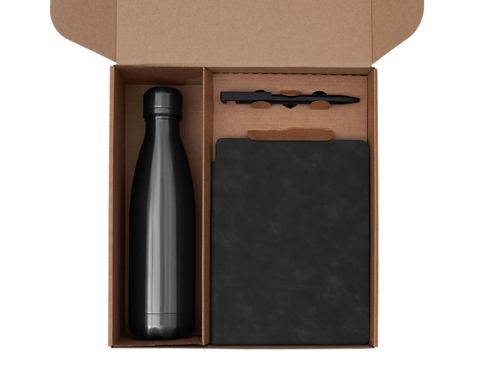 Подарочный набор с термобутылкой, блокнотом, ручкой и чаем, черный