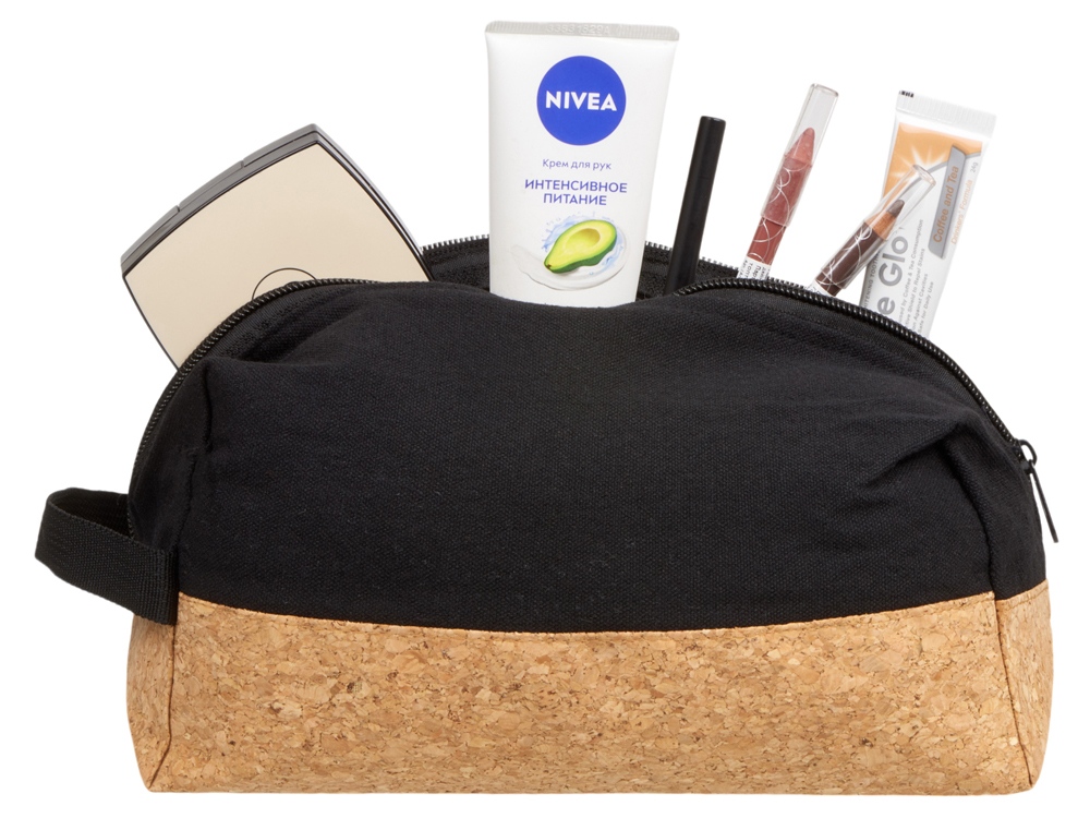 Большой вместительный несессер на молнии изготовлен из натуральных материалов - хлопка и пробки.