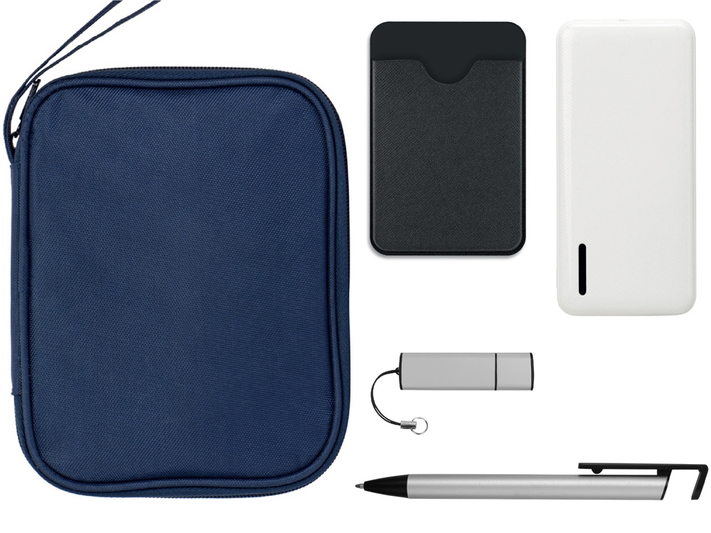 Подарочный набор с флешкой, повербанком и ручкой, темно-синий/серебристый