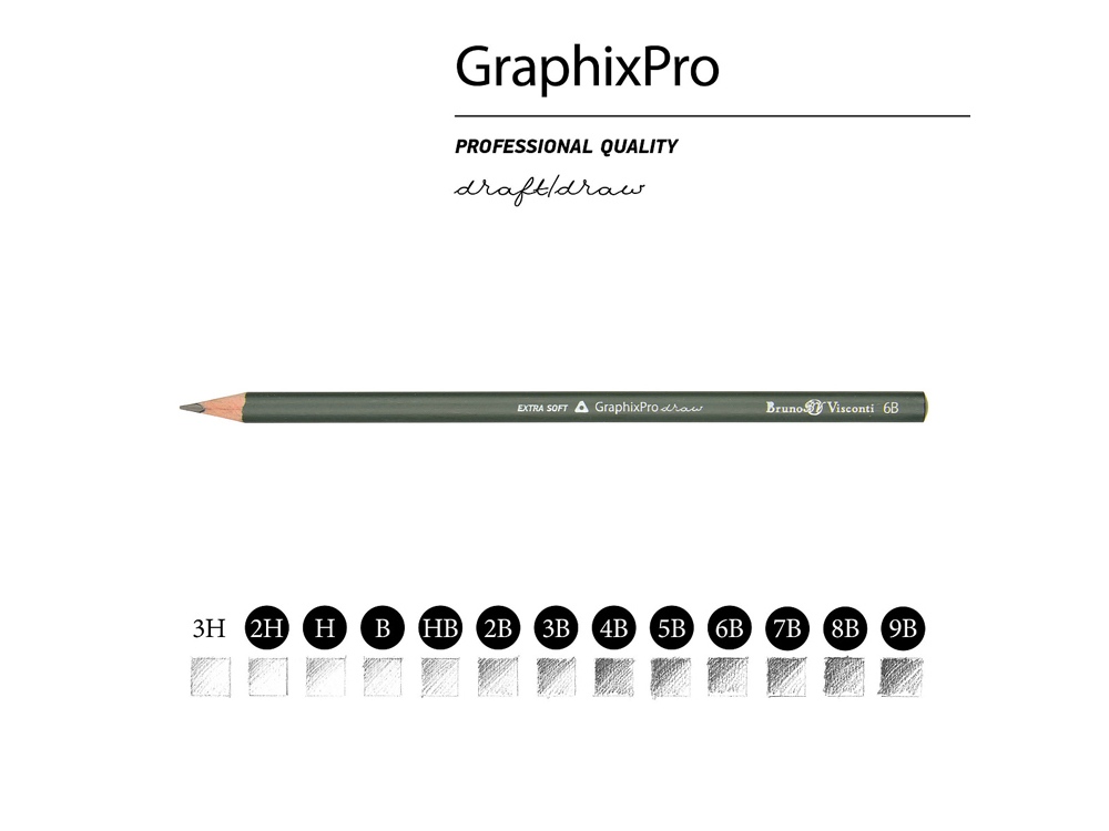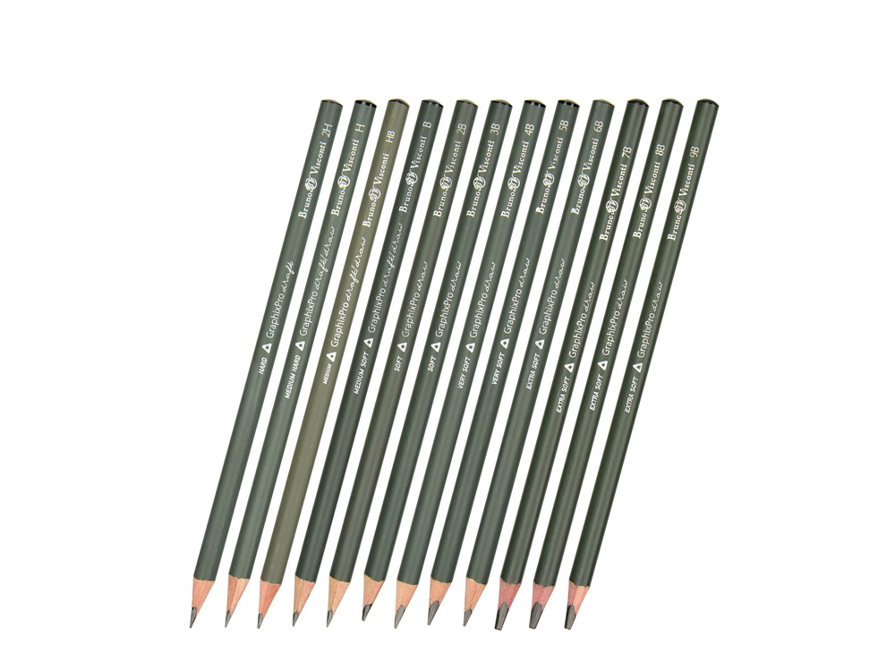 Двенадцать чернографитных карандаша Sketch&Art от BrunoVisconti - универсальный набор карандашей различной степени твердости (2H-9B) для выполнения различных графических работ.