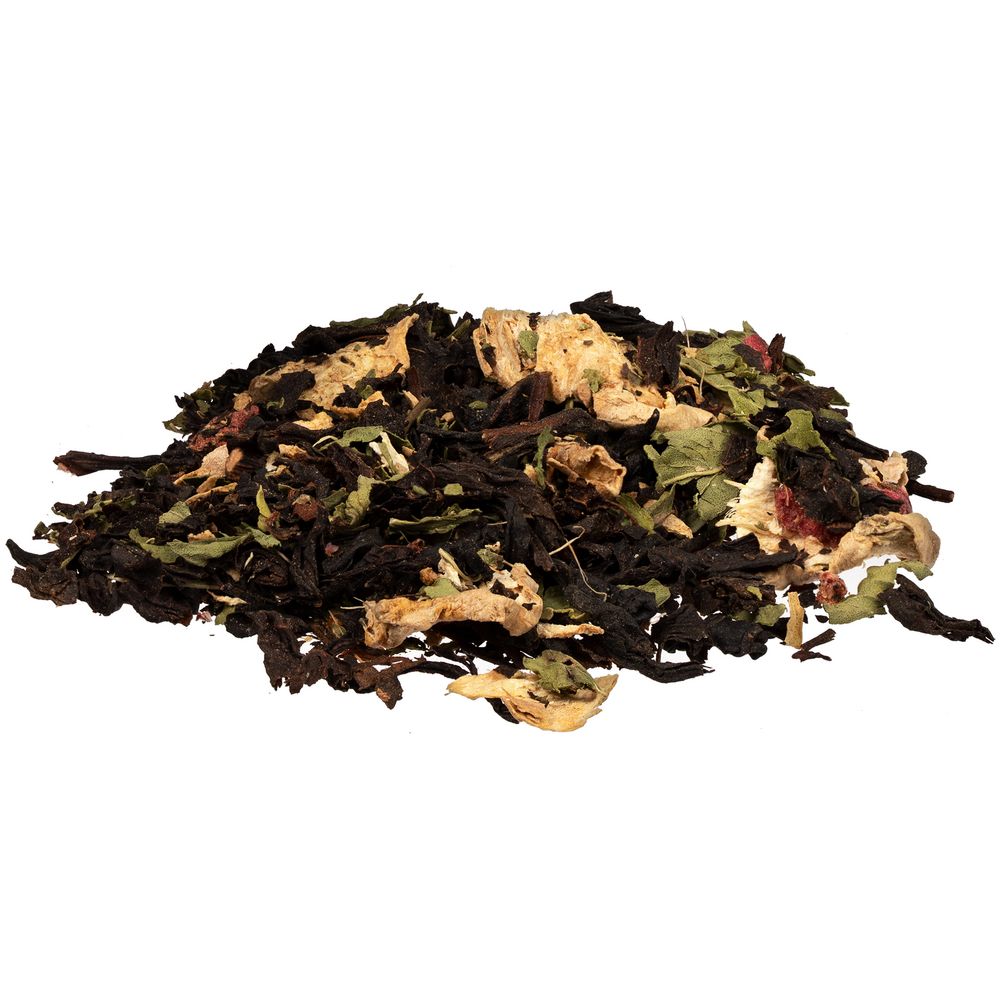 Состав: чай черный с имбирем и соком имбиря (чай черный байховый крупнолистовой, кусочки имбиря, сок имбиря), мята сушеная, малина сублимированная, ароматизатор натуральный «Малина».