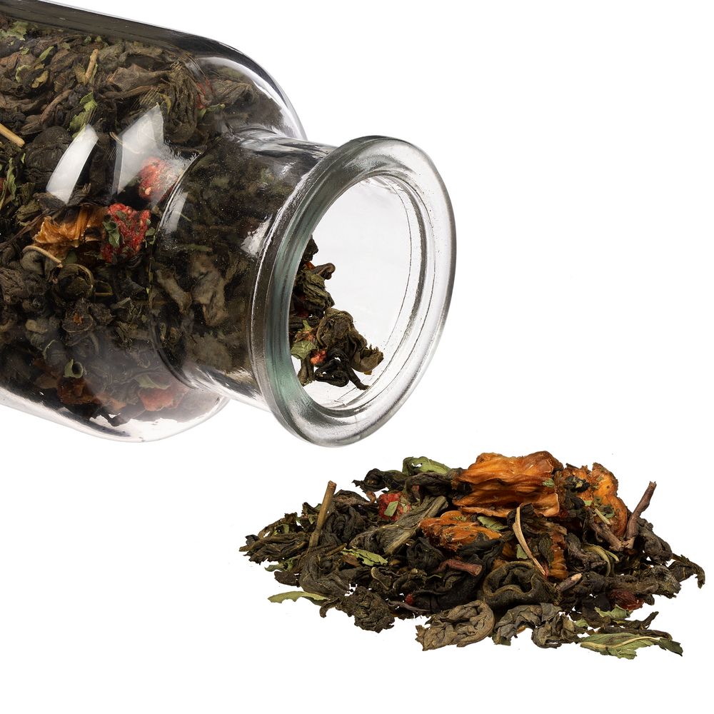 Зеленый крупнолистовой чай с соком ананаса, облепихой, толокнянкой и сафлором обладает многогранной палитрой вкуса и аромата. В состав чая входят только натуральные ингредиенты, а чайные листья предварительно вымачиваются в соке ананаса: вкус напитка становится особо насыщенным и обогащенным. «Сокочай» станет прекрасным подарком для любителей необычных вкусовых сочетаний и здорового образа жизни.