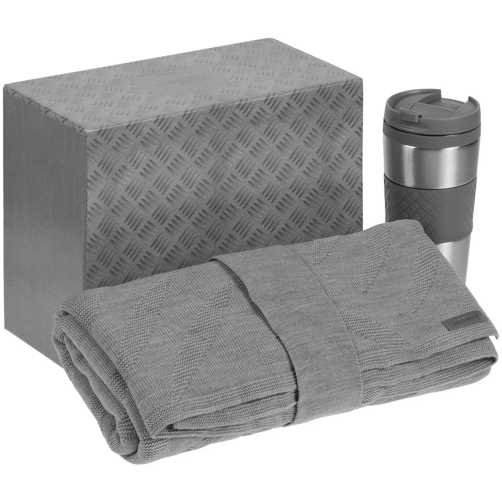 акрил, коробка - микрогофрокартон, плотность 240 г/м², металл, микрогофрокартон, плед - акрил, полноцветный лайнер, термостакан - металл, пластик, силикон