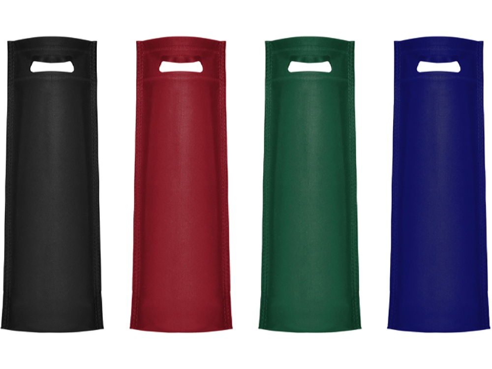 Чехол для бутылок с донной вставкой и вырубной ручкой из нетканого материала.