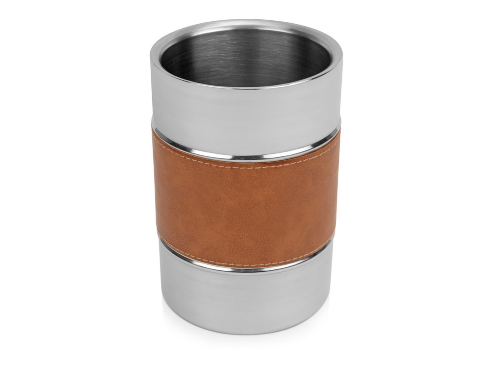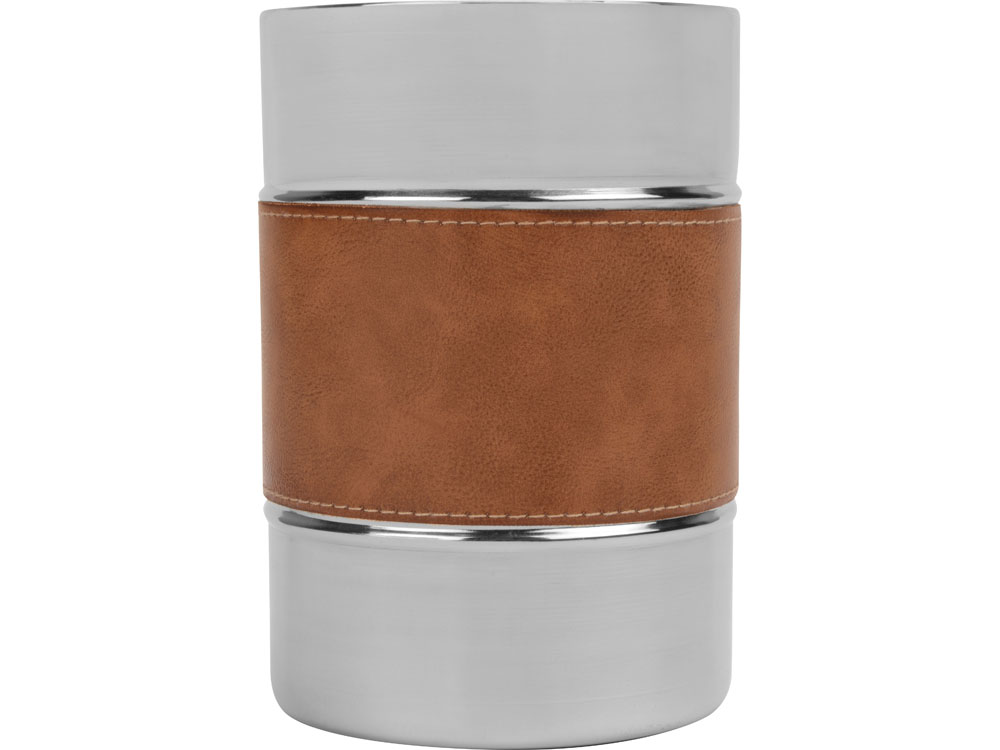 Благодаря двойным стенкам этот компактный и небольшой по объему кулер не позволит вашем напитку согреться в течение всего вечера. Более того, на корпусе охладителя Bradley имеется благородная вставка из искусственной кожи, на которой эффектно будет смотреться любой логотип или корпоративный слоган.