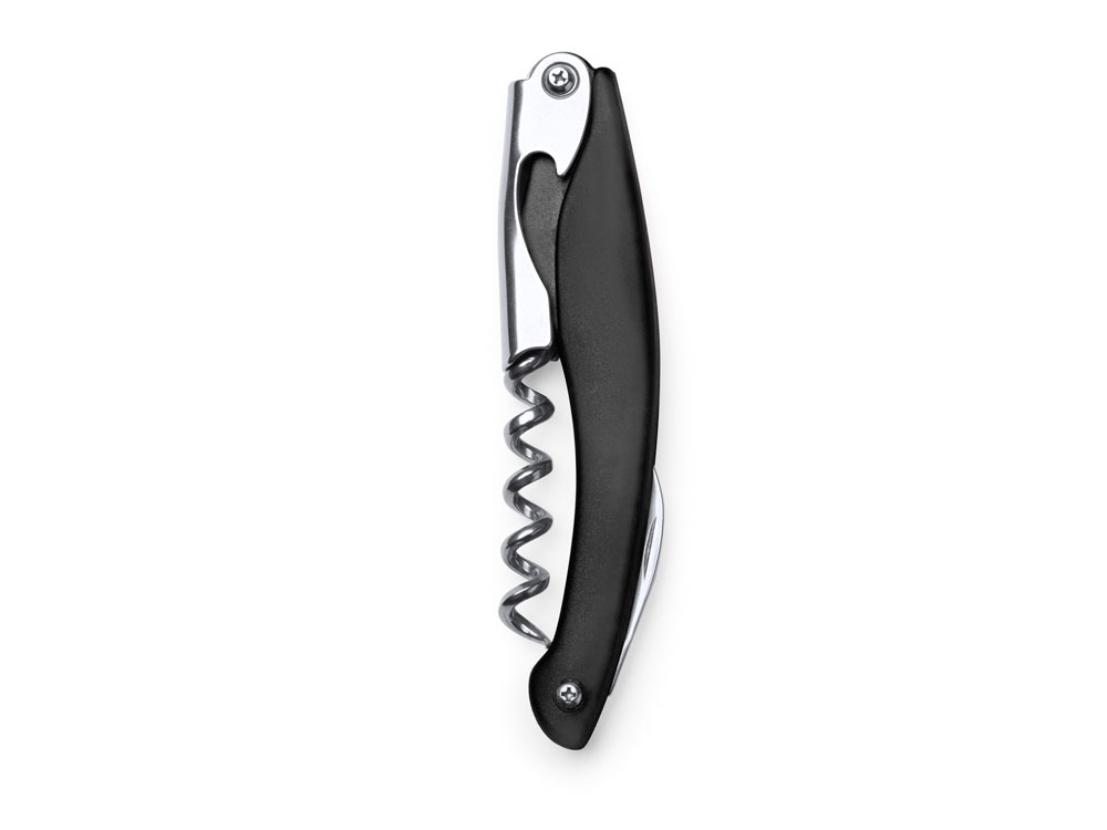 Штопор в классическом стиле из нержавеющей стали. С приспособлением для срезания фольги и открывалкой.