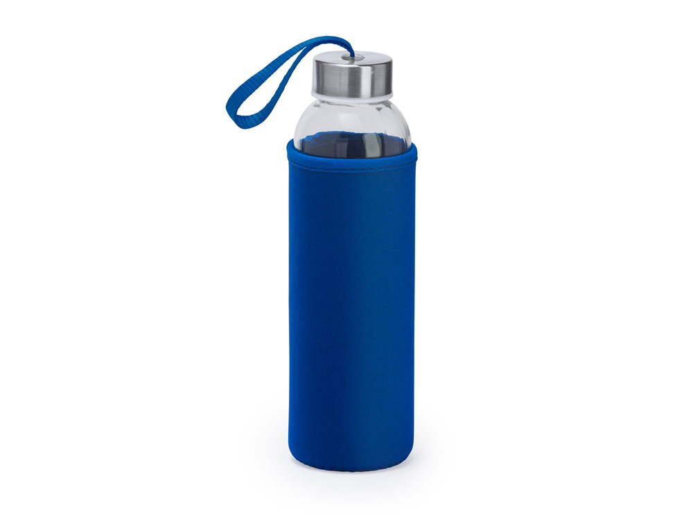 Бутылка стеклянная CAMU в чехле из неопрена, 500 мл, прозрачный/королевский синий
