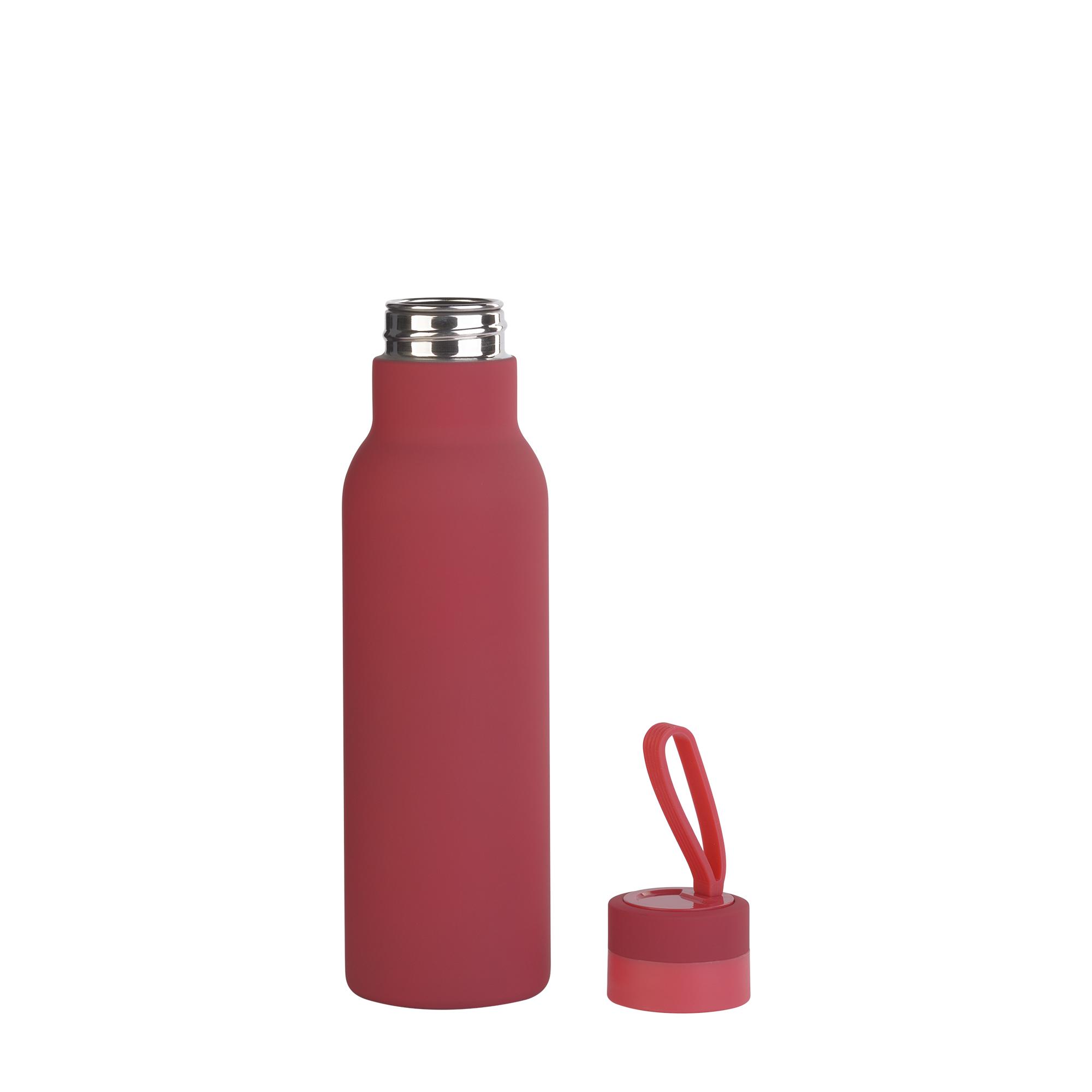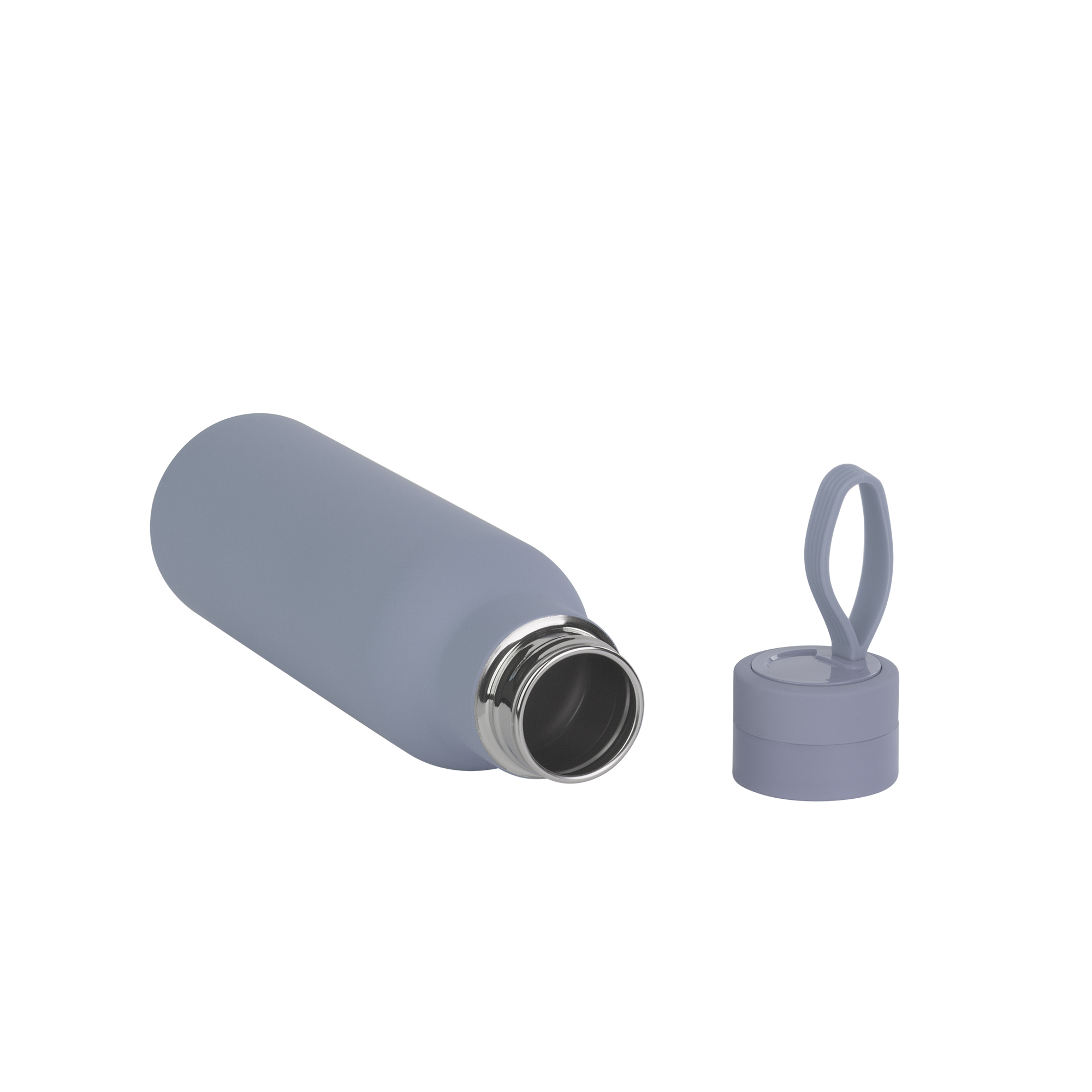 Завинчивающаяся колба защищает от протекания, удобная силиконовая ручка позволяет комфортно носить бутылку.