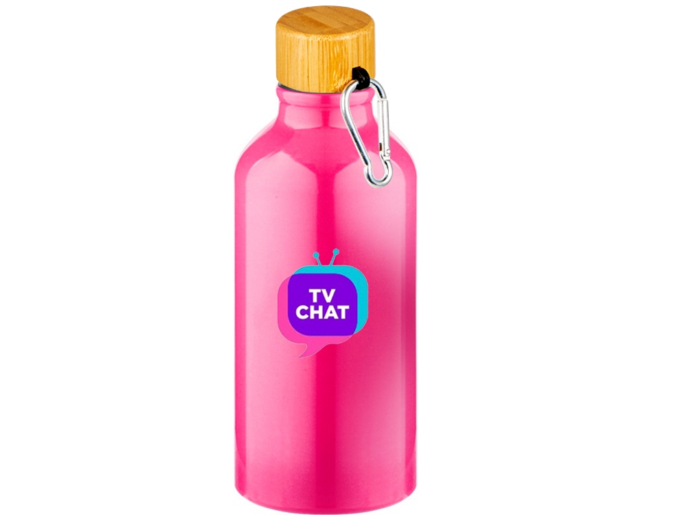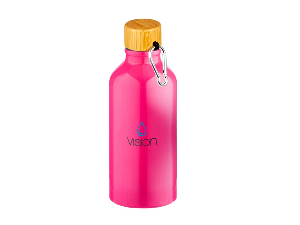Бутылка Hip S Bamboo с карабином 400мл, неоновый розовый