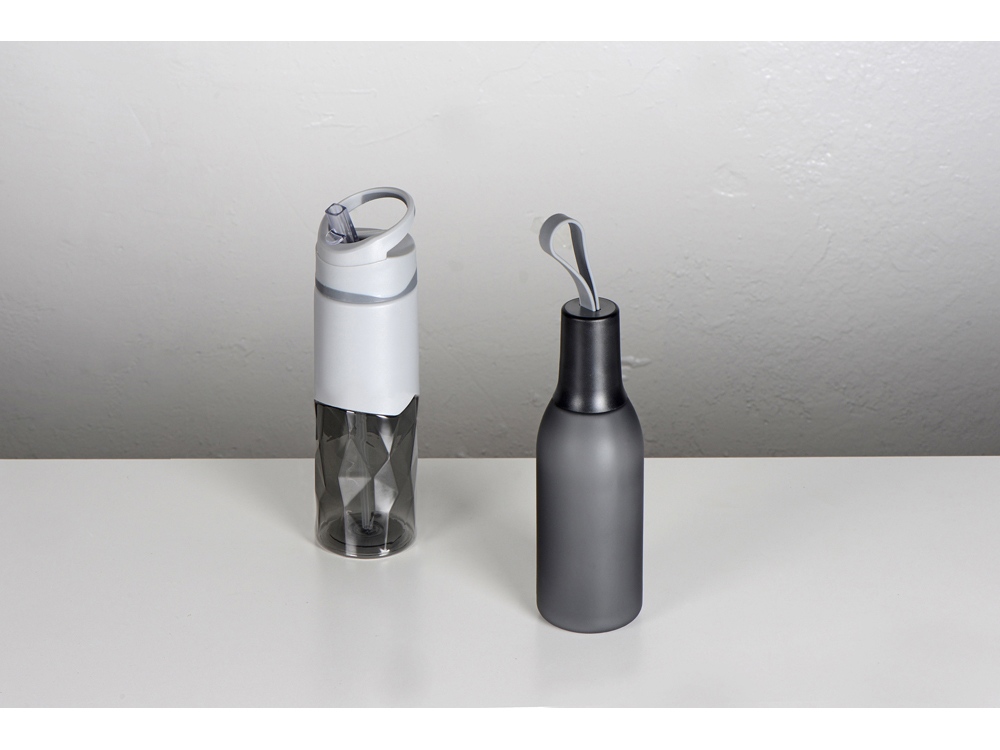 Спортивная бутылка Radius. Бутылка с геометрическими фигурами с одинарными стенками с гладкой поверхностью для нанесения логотипа. Съемная крышка, ручка и соломинка одинакового цвета. Объем – 750 мл.