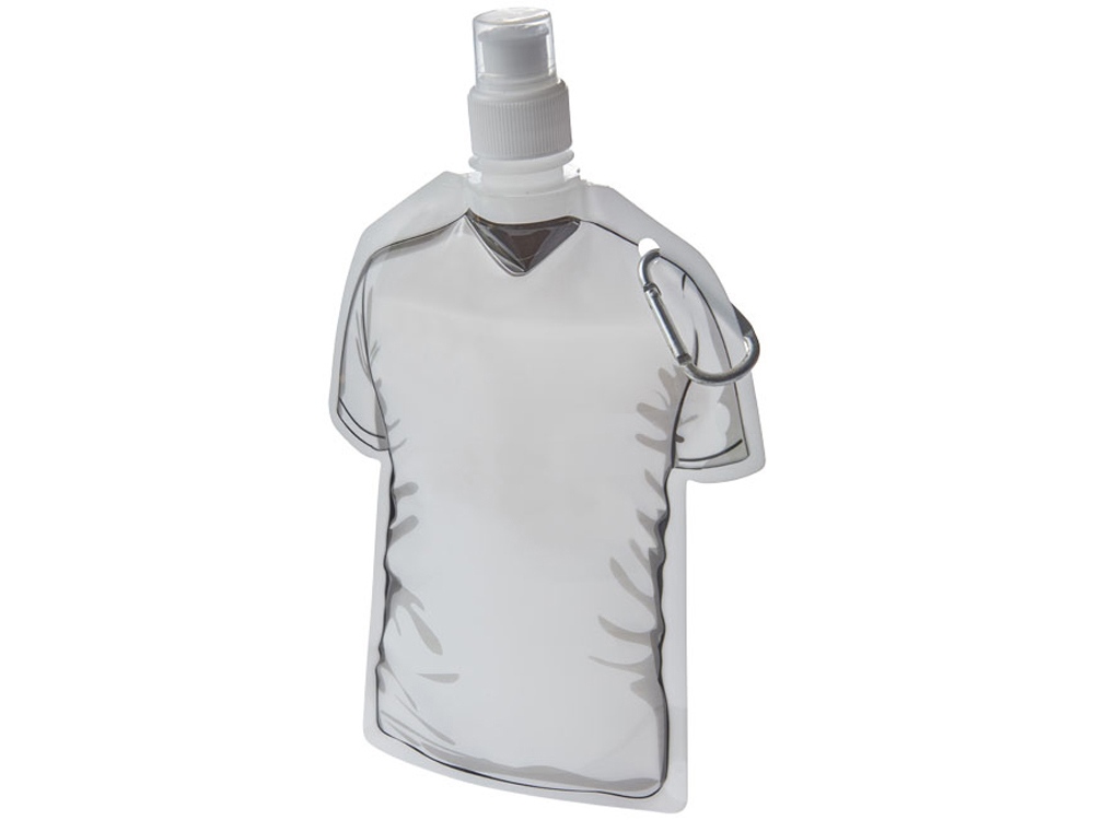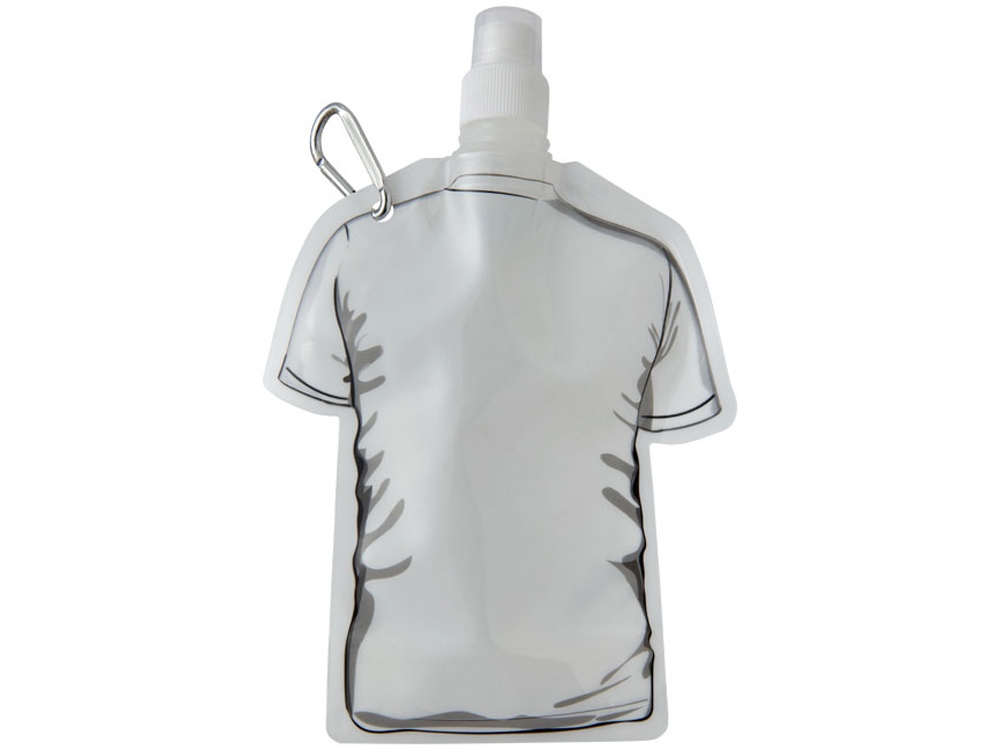 Емкость для воды в виде футболки Goal. Ламинированный пакет для питья с алюминиевым карабином. Прокручивающаяся крышка с выдвижным носиком и колпачком. Объем 500 мл. ПЭТ, ПЭ и ПП пластик. Тампопечать (1 цвет (цветные изделия)) на данный товар осуществляется бесплатно. Оплачивается только настройка оборудования в размере 3600 рублей на весь тираж.