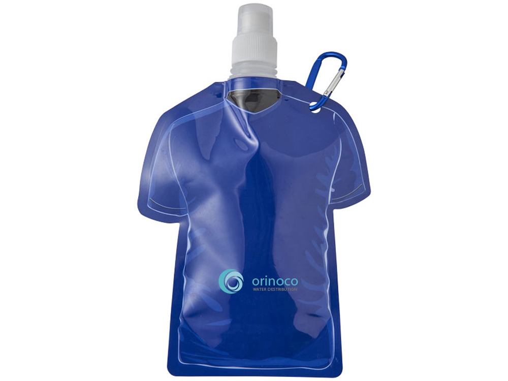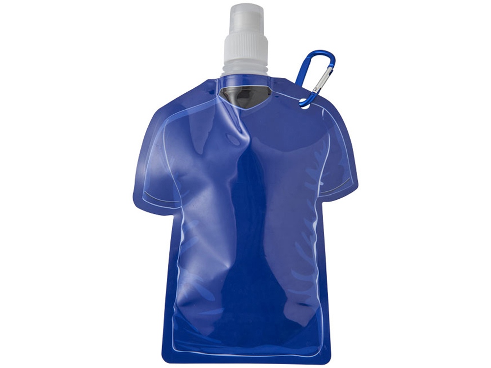 Емкость для воды в виде футболки Goal. Ламинированный пакет для питья с алюминиевым карабином. Прокручивающаяся крышка с выдвижным носиком и колпачком. Объем 500 мл. ПЭТ, ПЭ и ПП пластик. Тампопечать (1 цвет (цветные изделия)) на данный товар осуществляется бесплатно. Оплачивается только настройка оборудования в размере 3600 рублей на весь тираж.