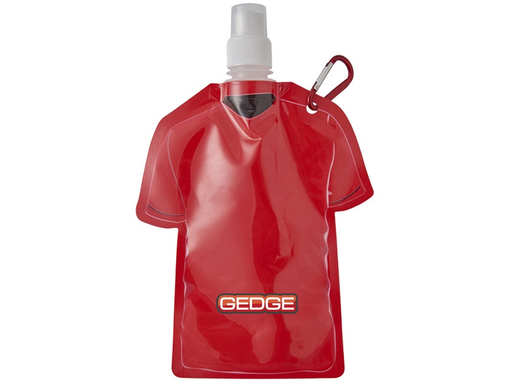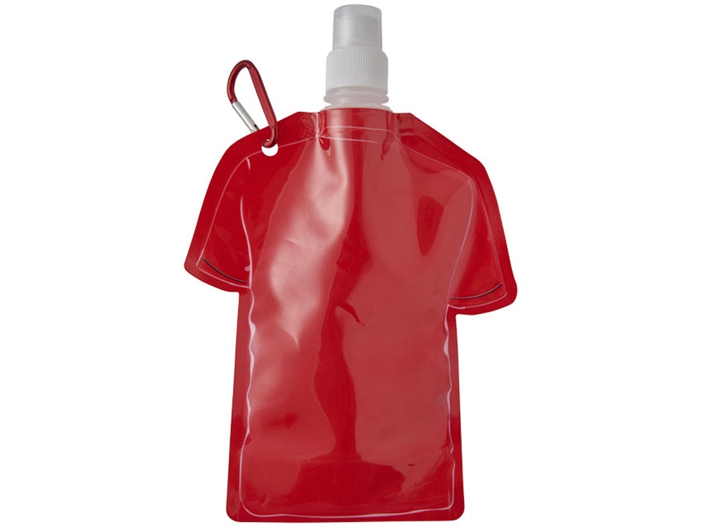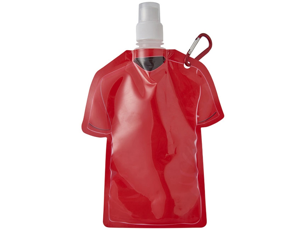 Емкость для воды в виде футболки Goal. Ламинированный пакет для питья с алюминиевым карабином. Прокручивающаяся крышка с выдвижным носиком и колпачком. Объем 500 мл. ПЭТ, ПЭ и ПП пластик. Тампопечать (1 цвет (цветные изделия)) на данный товар осуществляется бесплатно. Оплачивается только настройка оборудования в размере 3600 рублей на весь тираж.