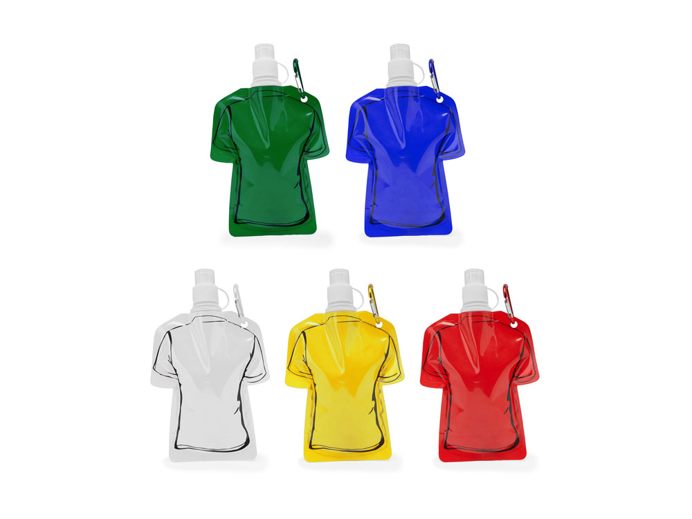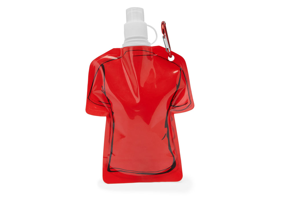 Гибкая емкость для питья в форме футболки, с защитным колпачком и карабином для удобства транспортировки. Объем 470 мл.