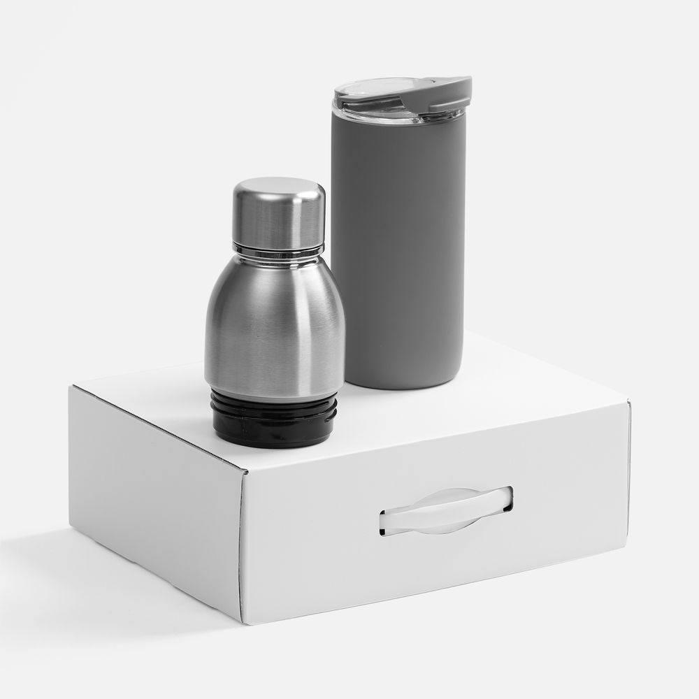 Varianti — это яркий пример посуды с двойной функциональностью. Один и тот же корпус можно превратить как в термостакан для чая и кофе с пластиковой крышкой, так и в термобутылку для прохладительных напитков — с крышкой стальной.