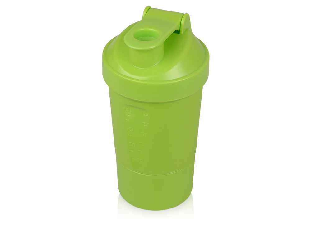 Шейкер для спортивного питания - это один из необходимых аксессуаров для спортсменов и людей, ведущих активный образ жизни. В нем можно приготовить протеиновый коктейль или фруктовый напиток. Шейкер классической формы, он удобно лежит в руке, к донышку прикручивается емкость для смешивания (таблетница), в которой можно хранить спортивные добавки: протеиновый порошок, витамины и другие концентраты. Внутри колбы имеется пластиковая сетка, чтобы процеживать спортивный напиток, а также металлический размешиватель, который растворяет порошок в напитке без комочков. Объем - 400мл. Шейкер изготовлен из пищевого пластика, он герметичен и легко моется.