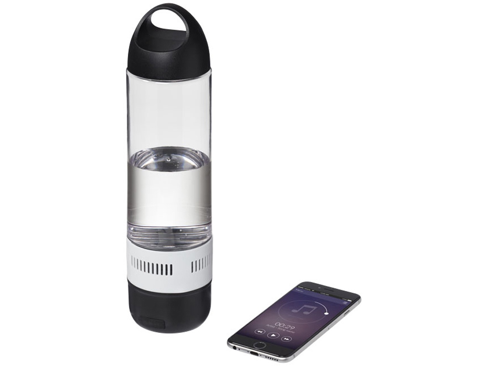 Спортивная аудиобутылка Ace Bluetooth®. Бутылка с одинарными стенками и откручивающейся крышкой. Со съемным динамиком Bluetooth®. В комплекте зарядный кабель micro USB. Радиус работы 10 метров. Объем 500 мл. Упакована в подарочную коробку. Eastman Tritan™ без БФА. Тампопечать (1 цвет (цветные изделия)) на данный товар осуществляется бесплатно. Оплачивается только настройка оборудования в размере 3600 рублей на весь тираж.