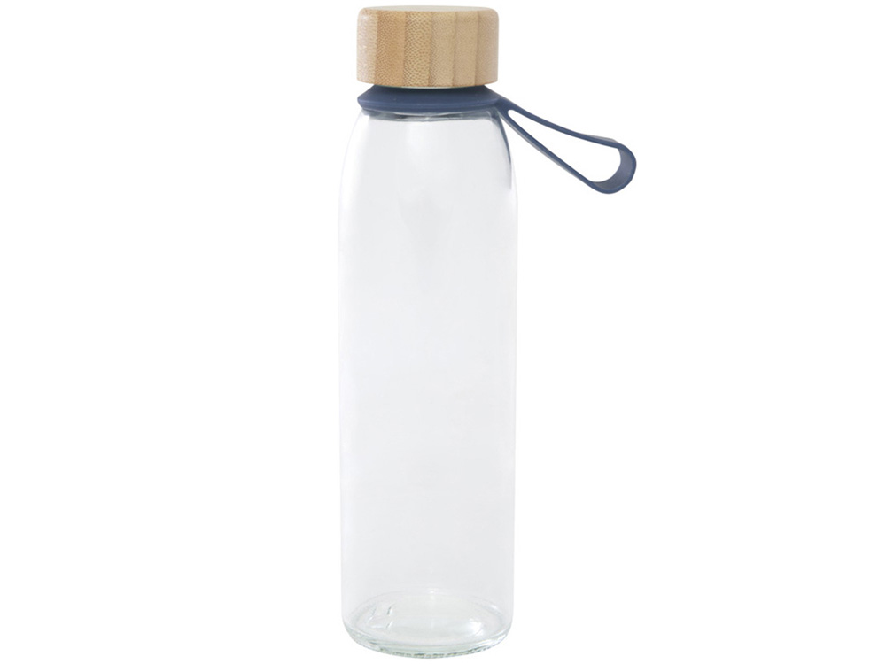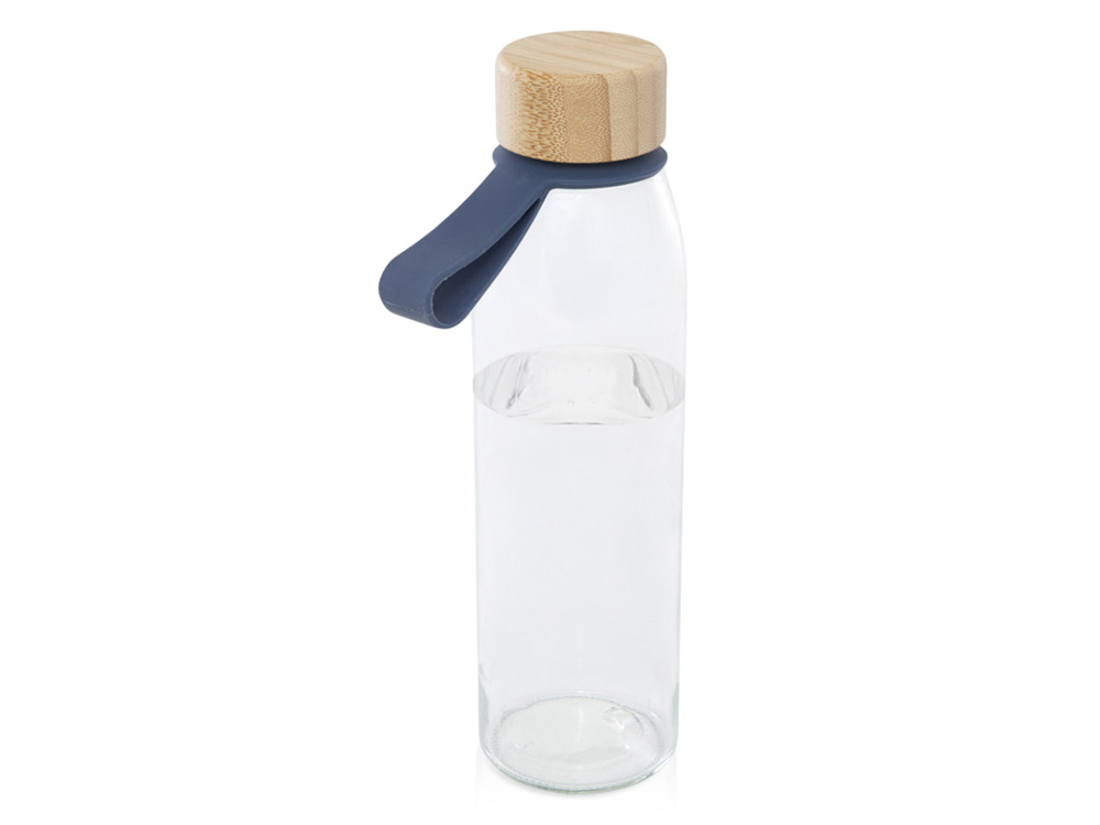 Стеклянная бутылка для воды Porto объемом 500 мл с силиконовой ручкой и бамбуковой крышкой - Синий