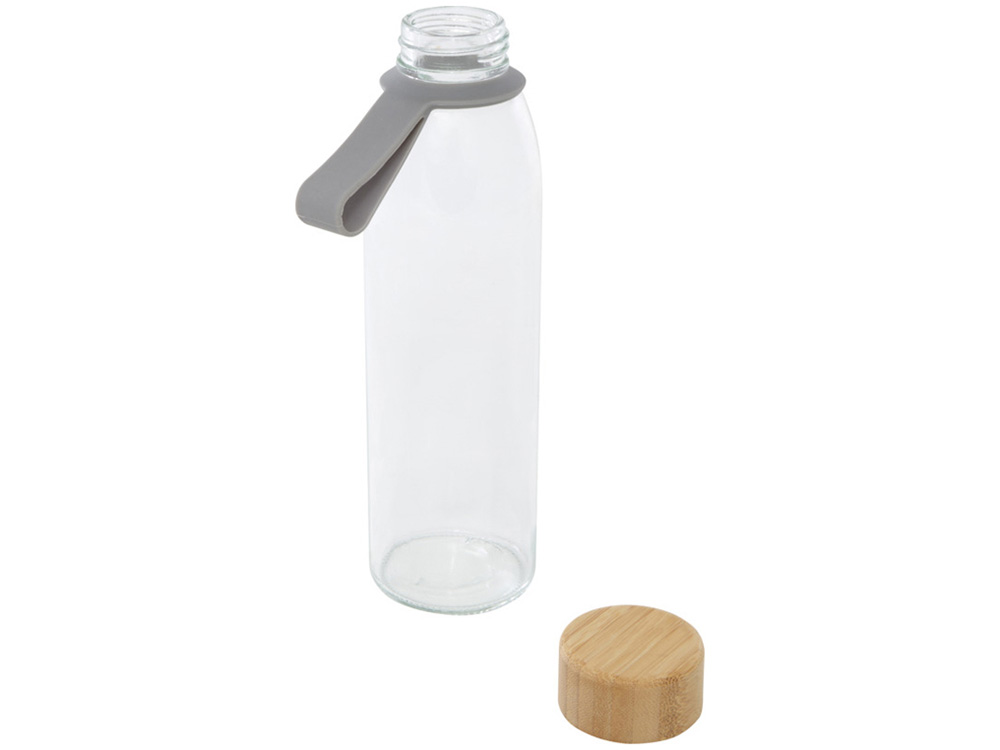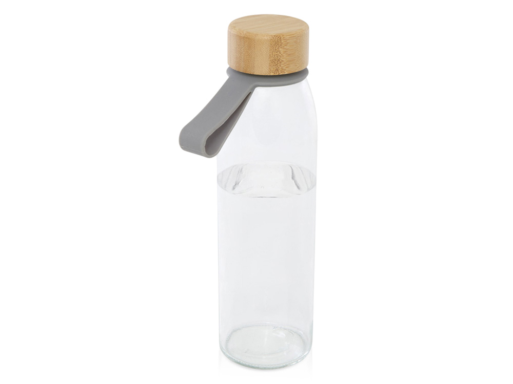 Стеклянная бутылка для воды Porto объемом 500 мл с силиконовой ручкой и бамбуковой крышкой - Серый